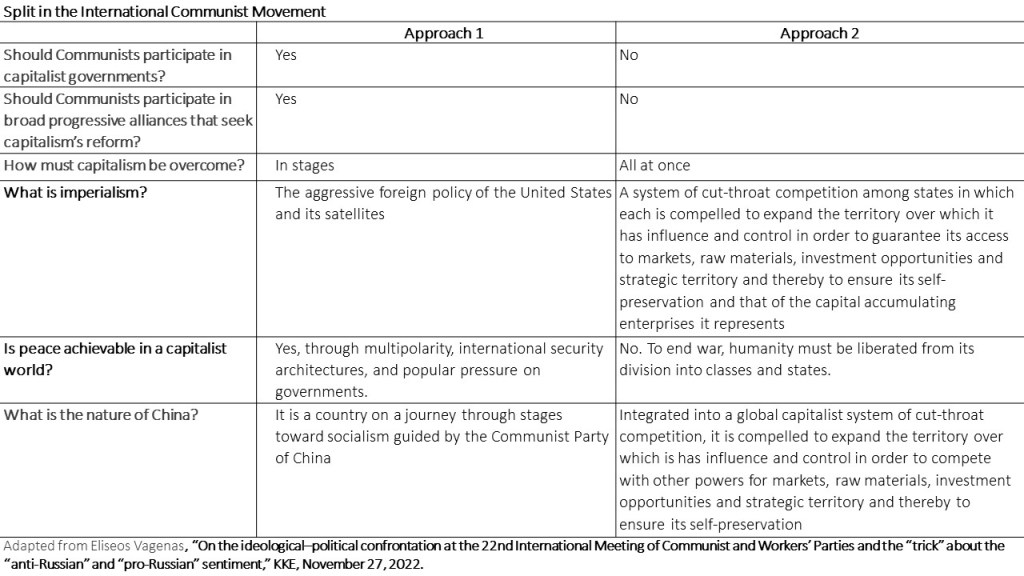 Advocates of multipolarity fight, not for the end of hegemony, but for the end of US efforts to prevent Russia and China from expanding their regional empires—hence, for the end of US world hegemony and the emergence of Russian and Chinese regional hegemonies. Multipolarity is an imperialist project, even if its advocates use anti-imperialist rhetoric and themes to cloak its true identity. This is not to say that US hegemony is more desirable than a multipolar series of regional hegemonies, only that imperialism in any form, multipolar or unipolar, is equally objectionable and equally inimical to the class interests of the proletariat. Would the international working class of the 1930s have been better off in a multipolar world in which London, Paris, and Washington ceded Central and Eastern Europe to Germany, the Balkans to Italy, and East Asia and the Pacific to Japan? For Marxists, the key question is not whether three capitalist centers should divide the world amongst themselves—the United States, China, and Russia, in preference to only one, the United States. Is enslavement and exploitation by Chinese and Russian capitalists more desirable than enslavement and exploitation by US capitalists? The key task is to bring the enslavement and exploitation of the proletariat by the bourgeoisie, regardless of the exploiters’ nationality, to an end. The job of socialists, according to Lenin, is to end war by ending the division of humanity by class and nation. That won’t be accomplished by exercises in political perjury, where the nature of Russia as an imperialist aggressor is covered up by intellectuals who think Marxism is rooting for the weaker bourgeoisie in an inter-imperialist conflict.